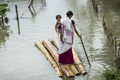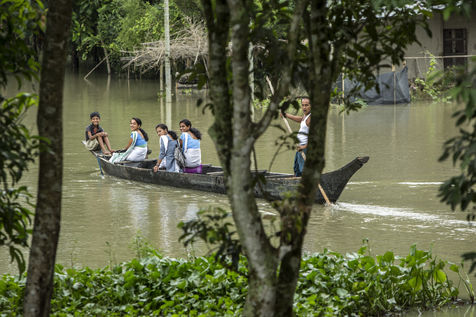 Mais lorsque les pluies diluviennes arrivent, le fleuve nourricier se gonfle, Majuli se retrouve alors submergée, grignotée de toute part. L'eau envahit les terres et détruit les récoltes. Ses rives s'arrachent par pans entiers. Les forts courants empêchent le ferry de traverser et l'île se retrouve privée d'électricité. Chaque année, plusieurs villages sont emportés au fil des crues.