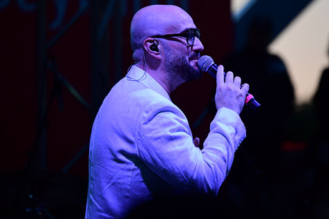 Turkish musician Beduk performs on stage at Anitpark on the occasion of the May 19 Commemoration of Ataturk, Youth and Sports Day in Ankara, Turkey on May 19, 2025.