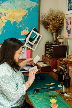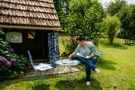 Marjorie, alias l'Hortesienne, est créatrice de cyanotypes dans la Manche, en Normandie.