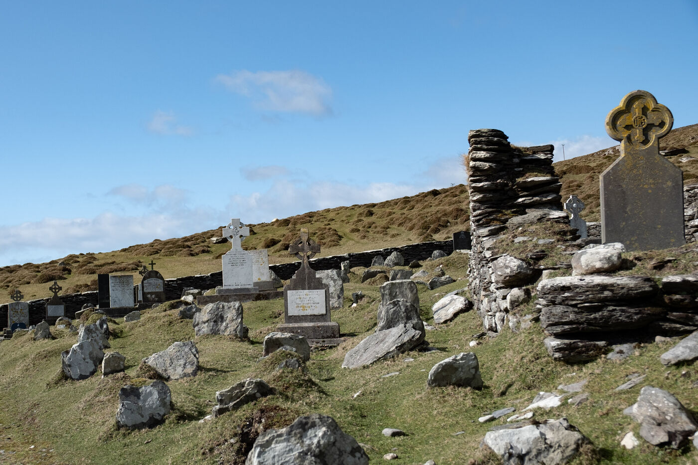 Dursey Island lingers between life and abandonment. Empty roads, rusted cars, and a silent phone booth stand alongside well-kept houses — their owners unseen — while the wind carries echoes of past tragedies.