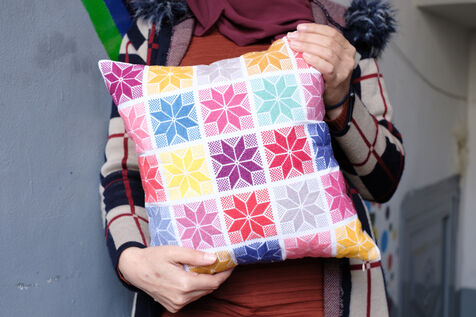 Ahed is a designer at the Alsama craft workshop, located in the heart of the Shatila refugee camp in Beirut.
