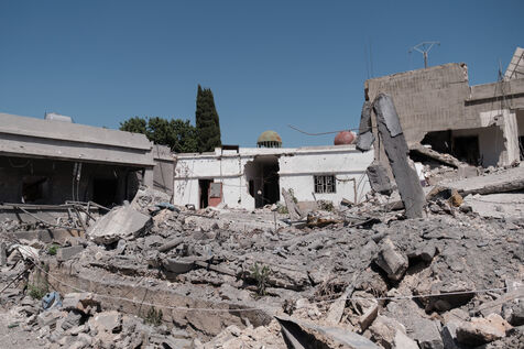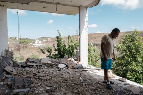 Nabil, a resident of the village, regularly goes round the neighboring houses destroyed by Israeli strikes to take stock of the damage and give news to the families.