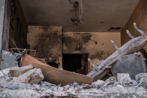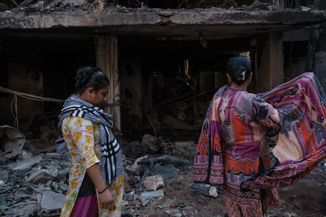 Neighbors and residents walk through the rubble of a building at the site of an Israeli strike on the Basta neighborhood in the heart of Beirut on October 10, 2024. At least 22 people were killed in the strike, and over a hundred were injured.