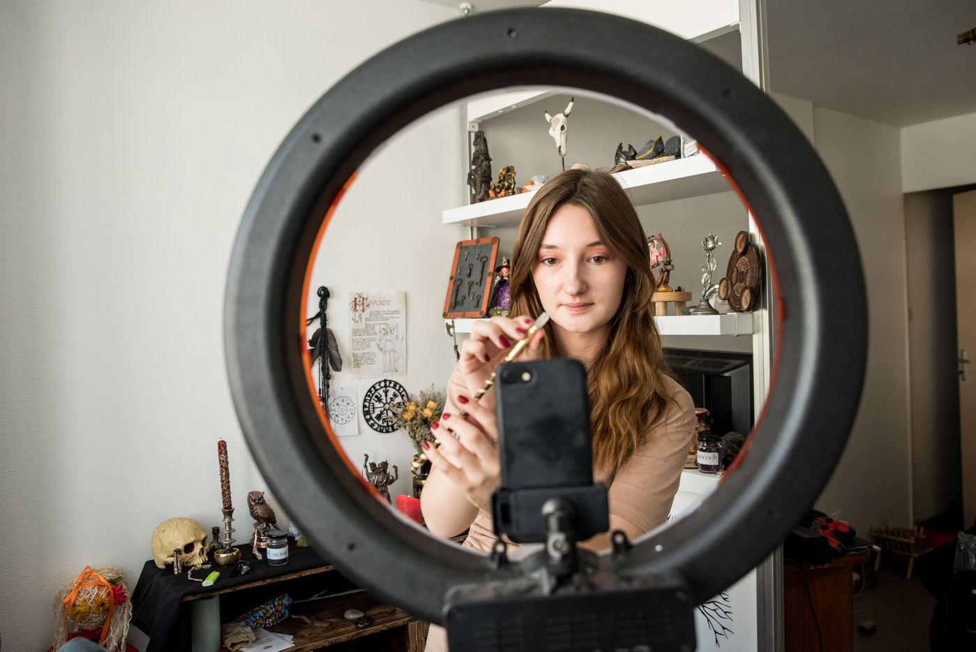 Manon is 20 years old and has been practicing witchcraft in her 25m2 apartment in Beaumont-sur-Sarthe for a year, after discovering the "Witch" community on TikTok. Between "reels" and rituals, she is looking for the balance, the anchor that will make her a professional in magic.