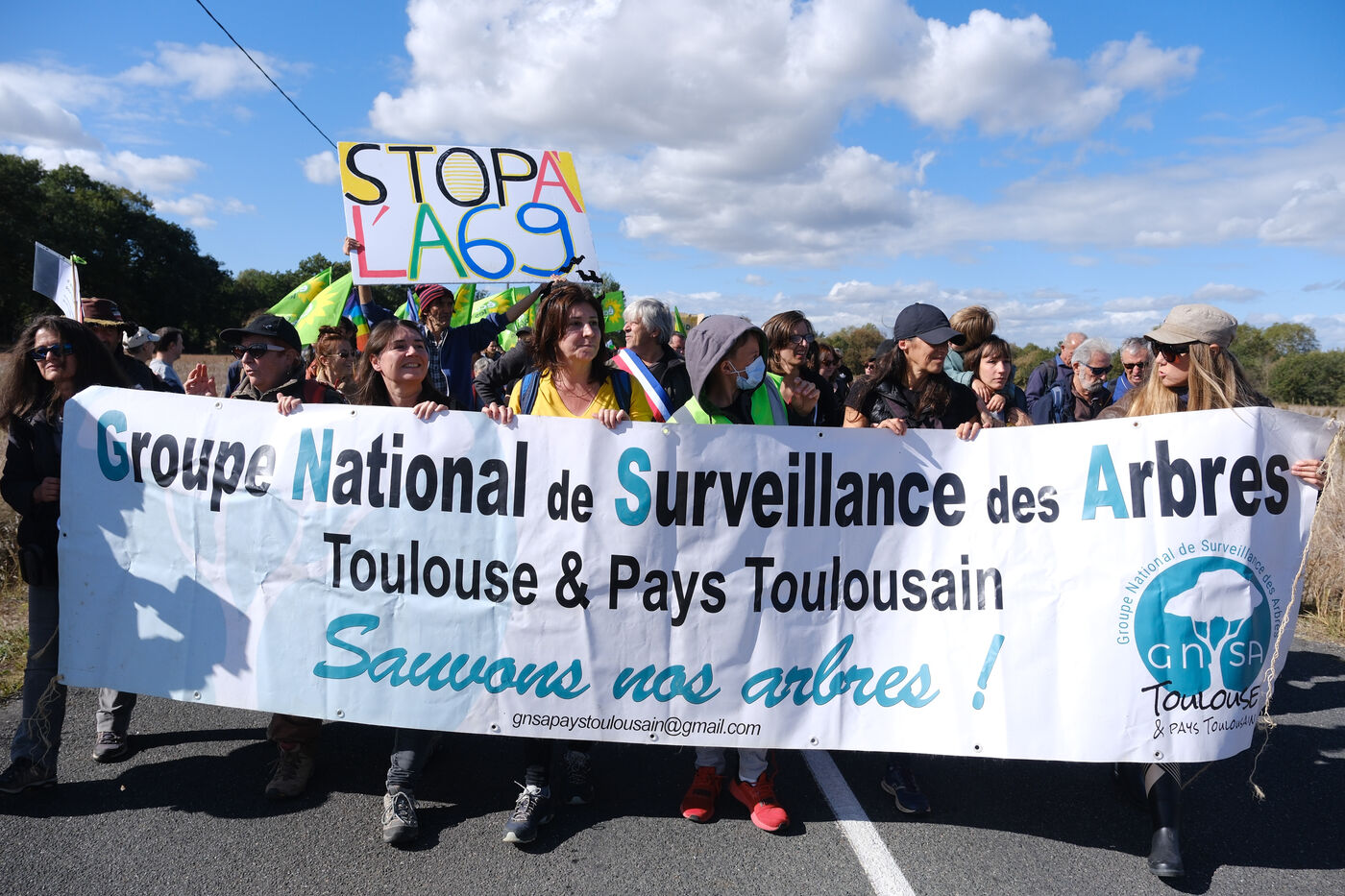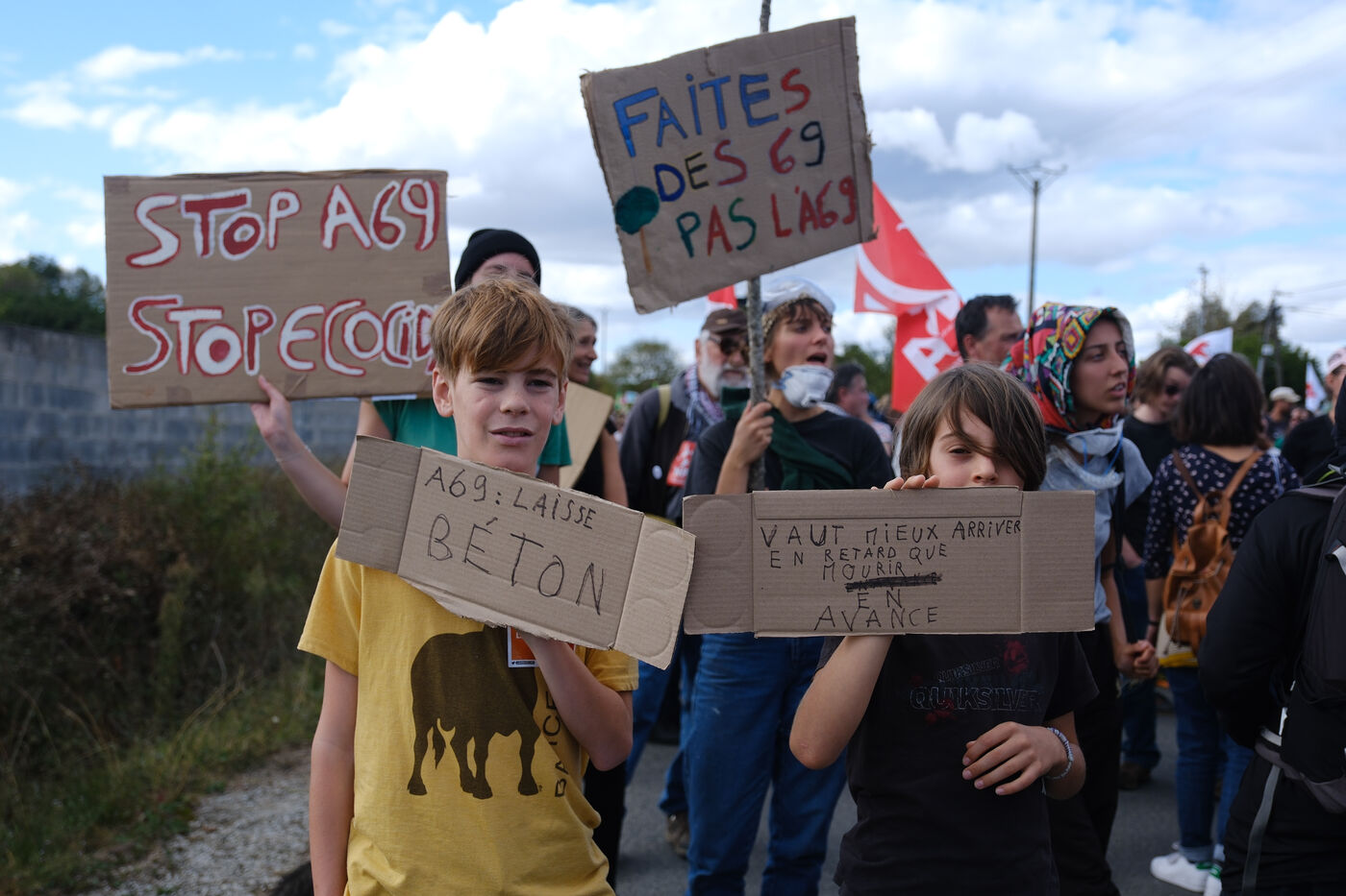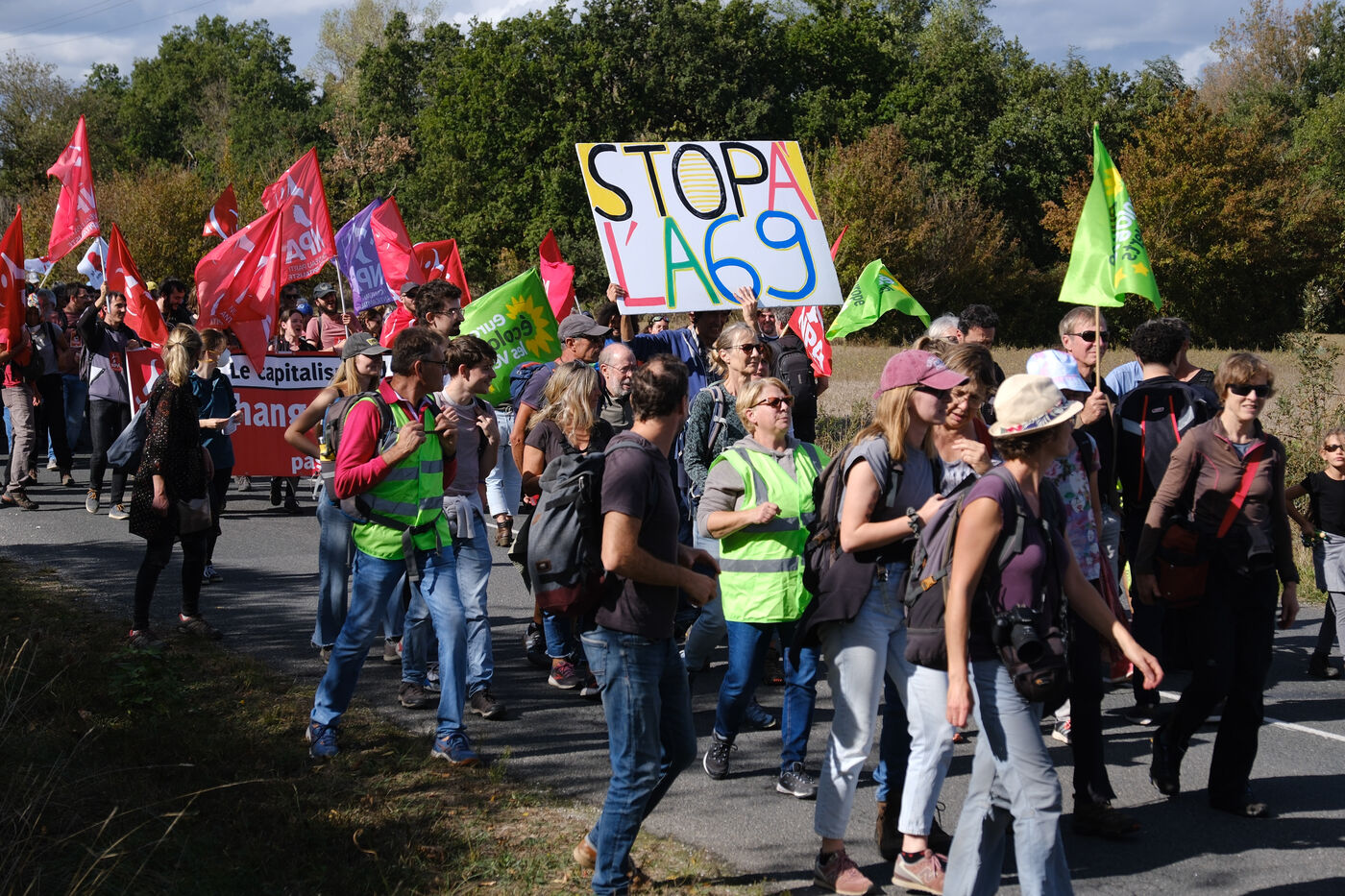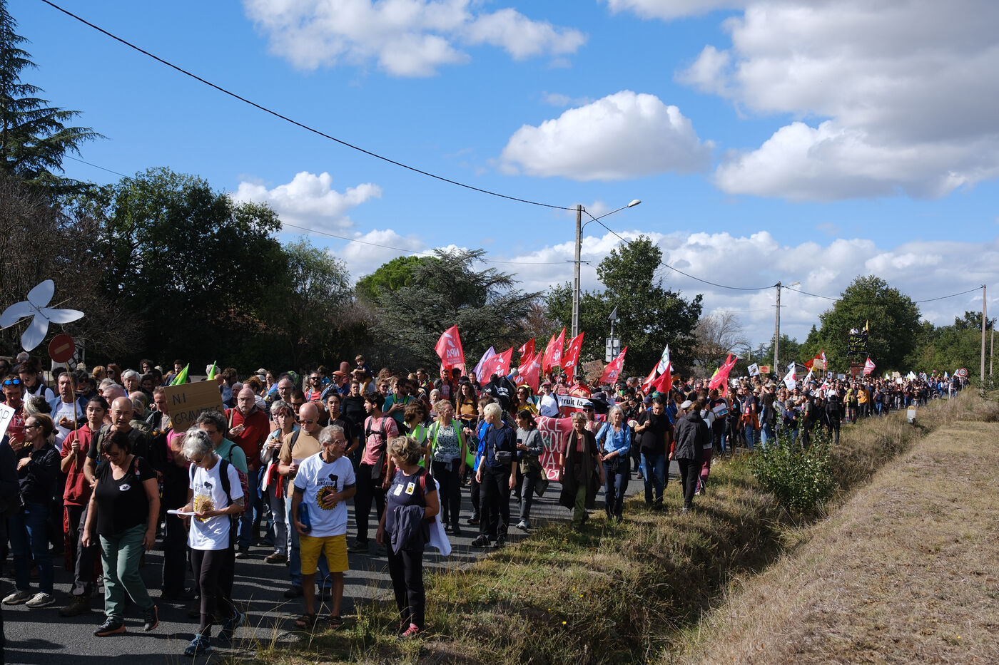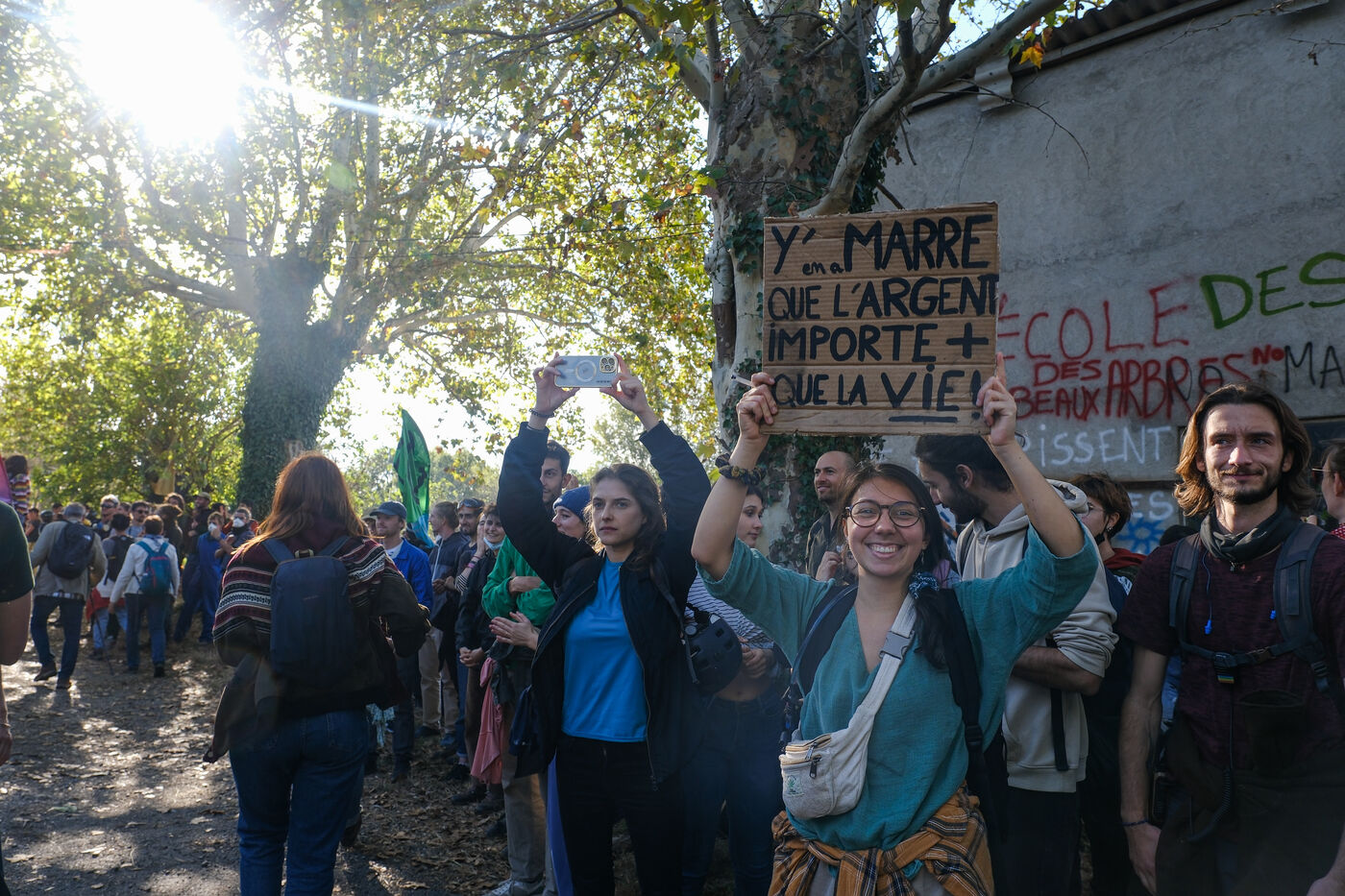 Ramdam sur le Macadam, a massive mobilization on the A69 motorway site to slow down the concreting work undertaken by VINCI and ATOSCA on the stretch of freeway between Toulouse and Castres, organized by Soulevements de la Terre, La Voix est Libre and Extinction Rebellion.