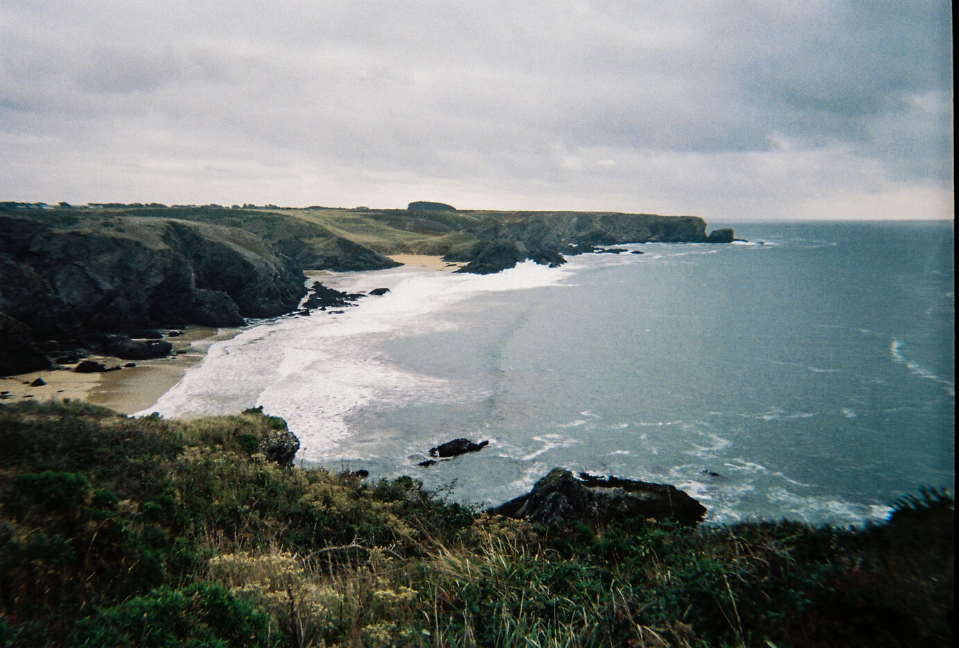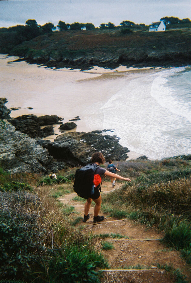 The GR 34 trail in Belle-Île-en-Mer offers an unrivalled hiking experience, revealing the wild splendor of this Breton island. Majestic cliffs plunge into the Atlantic, offering breathtaking panoramas, while hidden coves and sandy beaches dot the coastline. This coastal path, a blend of nature and history, crosses fragrant moors and picturesque villages. Historical relics, such as the Goulphar lighthouse, add a fascinating dimension to this adventure. Two inexperienced women and a dog set out on the trail on their own. For total disconnection, I opted for a disposable camera for shooting. Despite a few injuries, modest campsites, unexpected elevation changes and uncertain weather, the GR 34 in Belle-Île-en-Mer was a captivating exploration between land and sea for the three acolytes.
