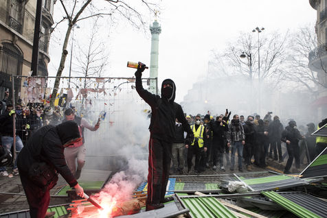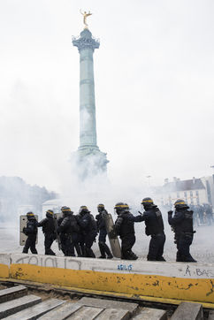 Pictures of Act XI of the Yellow Vests taken at Place de la Bastille and Place de la République in Paris.