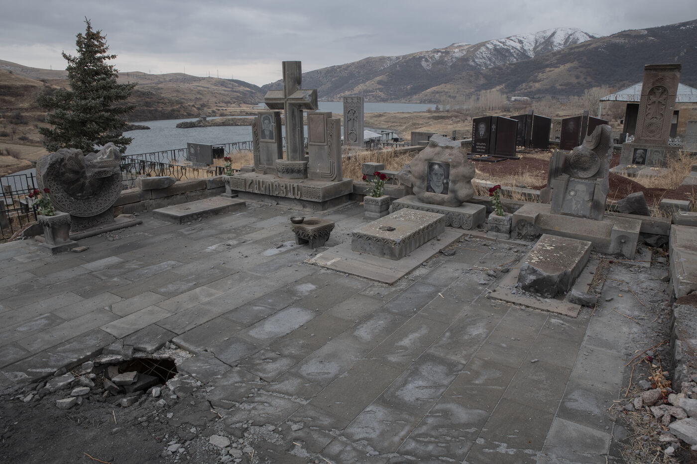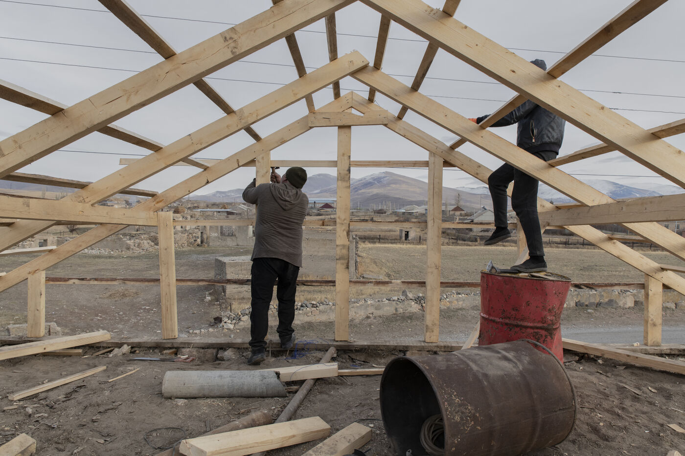 Si beaucoup refusent de parler de défaite, la perte de la moitié du Karabakh a profondément marqué la société arménienne. Signé le 10 novembre 2020 par le premier ministre Nikol Pachinian, l?armistice a été vécu comme une trahison par une partie de la population, qui peine aujourd?hui à retrouver confiance en ses institutions. Pour assurer sa survie, l?Arménie s?est tournée vers la Russie, la traditionnelle puissance tutélaire, qui déploie près de 2000 soldats dans le Karabakh afin de maintenir le fragile cessez-le-feu avec l?Azerbaïdjan. Mais, profitant des défaites russes sur le front ukrainien, Bakou multiplie les coups de main le long de la frontière, et occupe aujourd?hui 50 km2 du territoire national arménien. Les 12 et 13 septembre 2022, les bombes azerbaïdjanaises ont frappé plusieurs localités de l?Est de l'Arménie. Dans le village Sotk, les maisons bombardées sont reconstruites sous les yeux des troupes ennemies, campant sur les collines environnantes.