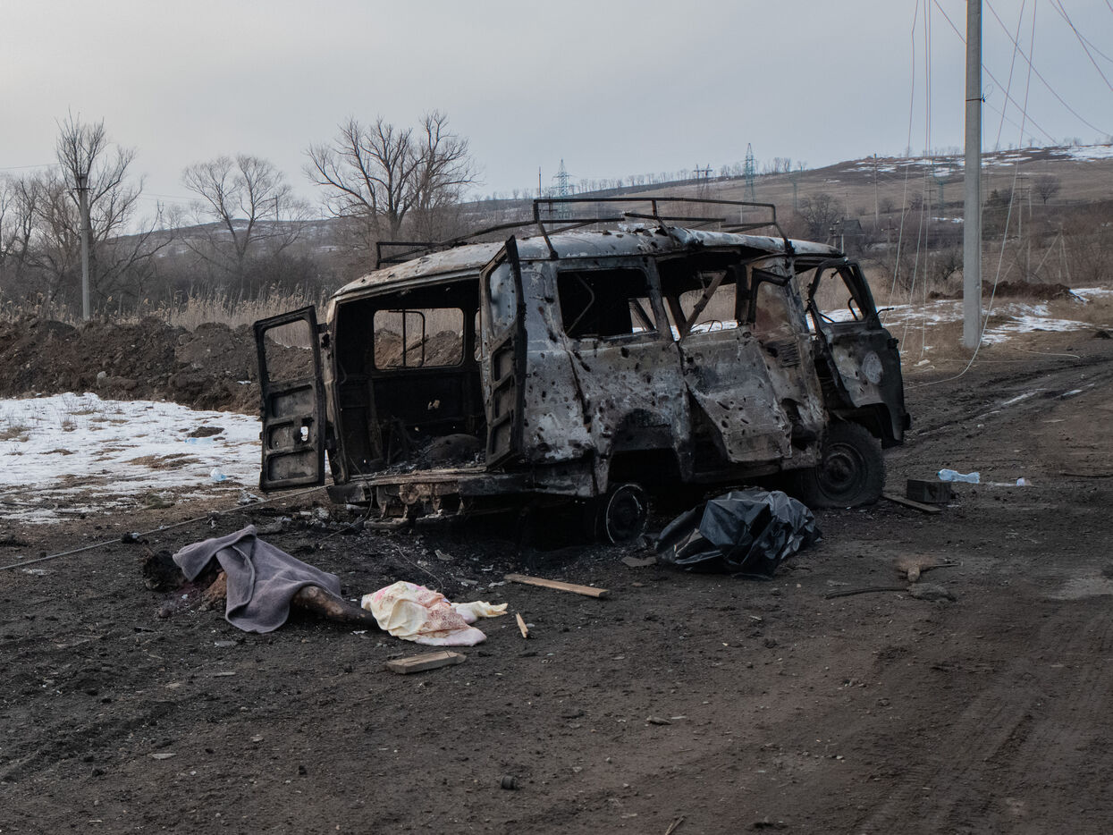 Après des mois d'assaults sur Bakhmout, dans le Donbass, l'armée russe est aujourd'hui aux portes de la ville. En quête d'une victoire symbolique, les troupes russes essayent d'encercler Bakhmout tout en progressant dans le district de Bakhmoutka à l'est de la ville. Théâtre d'affrontements particulièrement violents, le centre est la cible de bombardements quotidiens. En journée, des detonations résonnent toutes les 30 secondes dans ces rues quai désertes de la ville. Malgré les risques, Bakhmout compterait environ 7000 civils (10% de sa population normale), y compris des enfants, qui vivent sans eau courant ni électricité alors que les températures chutent jusqu'à -15 degrés.
