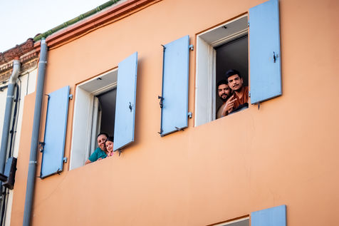 France, Perpignan, 2020-03-20. Illustration, Au style de vie tres gregaire, les habitants de l un des quartiers les plus pauvres de France furent tres soudes face au virus Covid-19 lors de la premiere vague. Cette population est particulierement touchee par des maladies chroniques telles que le diabete ou l obesite. La communaute gitane de Perpignan est l une des plus ancienne d Europe, en partie installee dans le quartier Saint-Jacques depuis les annees 40. Un confinement difficile a vivre pour les gitans et des rues desertes laissant apparaitre un habitat souvent indigne.. Photographie de Arnaud Le Vu / Hans Lucas.