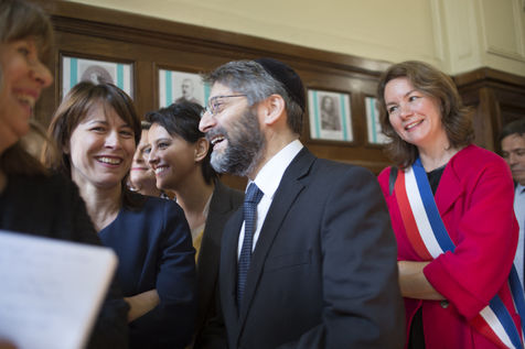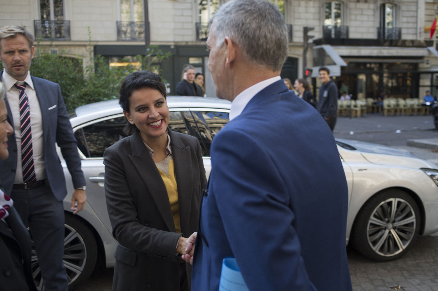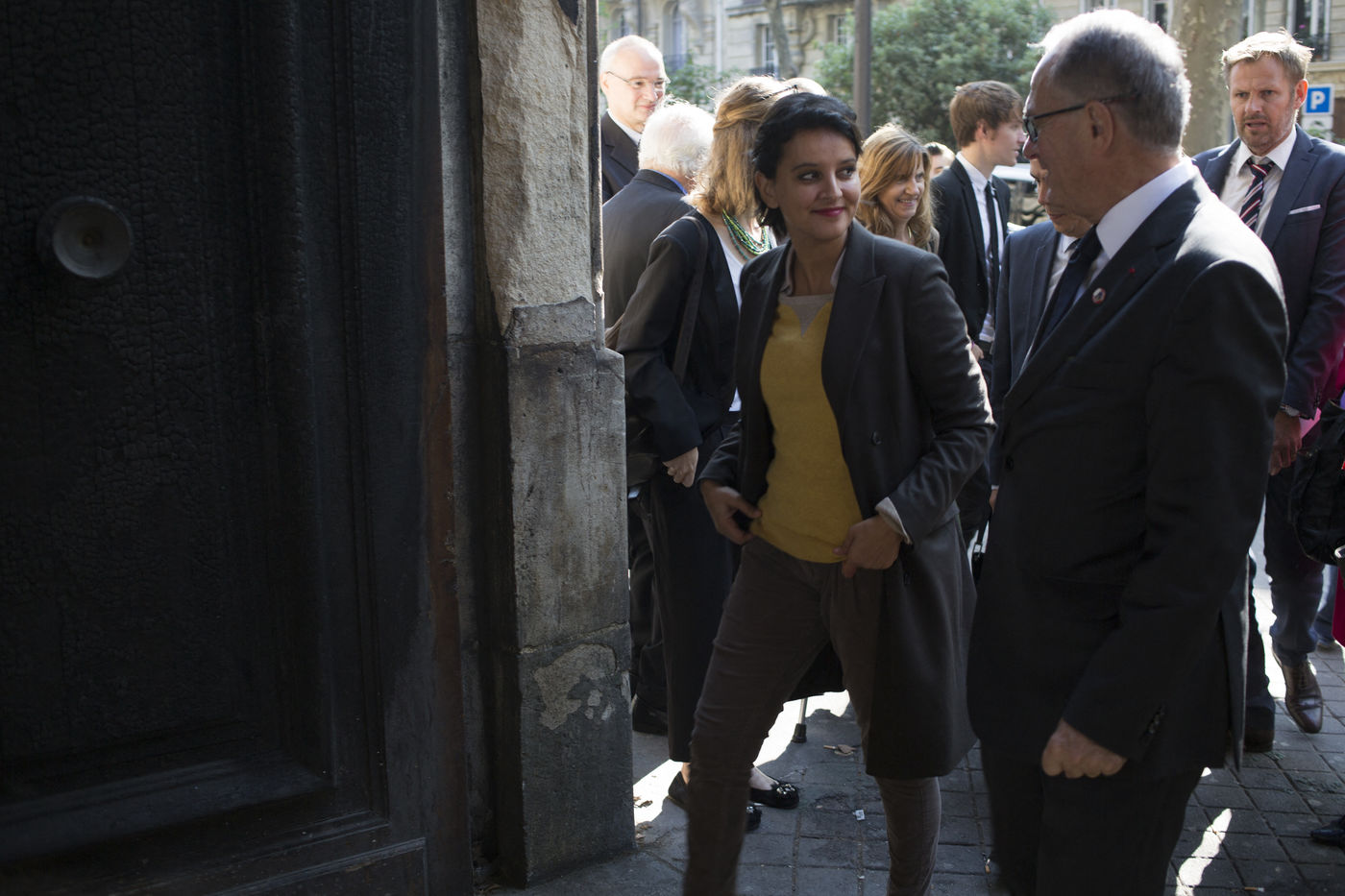 Cité scolaire Jacques Decour (Paris IX) 21 septembre 2016 - Cérémonie de remise du drapeau du Souvenir Français en présence de Najat Vallaud-Belkacem, ministre de l'éducation, Delphine Bürkli, Maire du IXème arrondissement et Pauline Véron, conseillère de Paris.