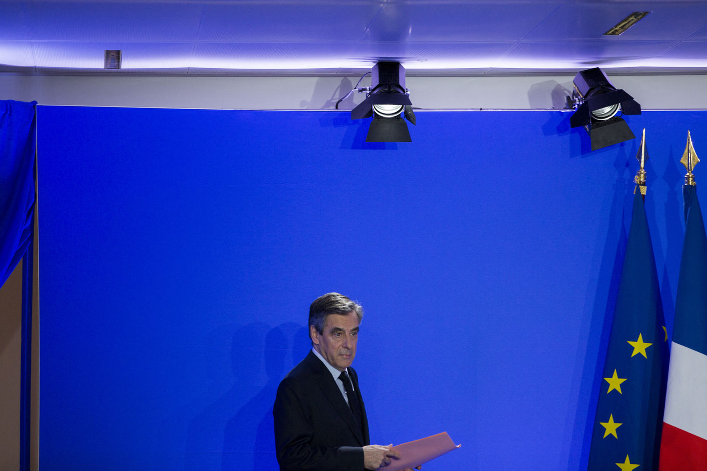 Paris, France 6 février 2017 - Conférence de presse de François Fillon, depuis son QG de campagne à Paris.