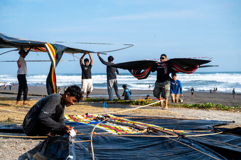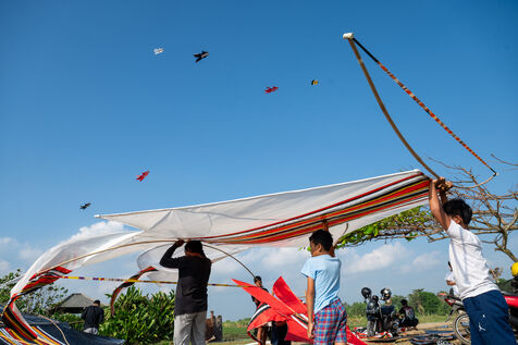In Bali, flying kites are messengers between humans and the gods. The Balinese believe that when kite season arrives, Rare Angon comes to Earth with his flute to call the wind.
