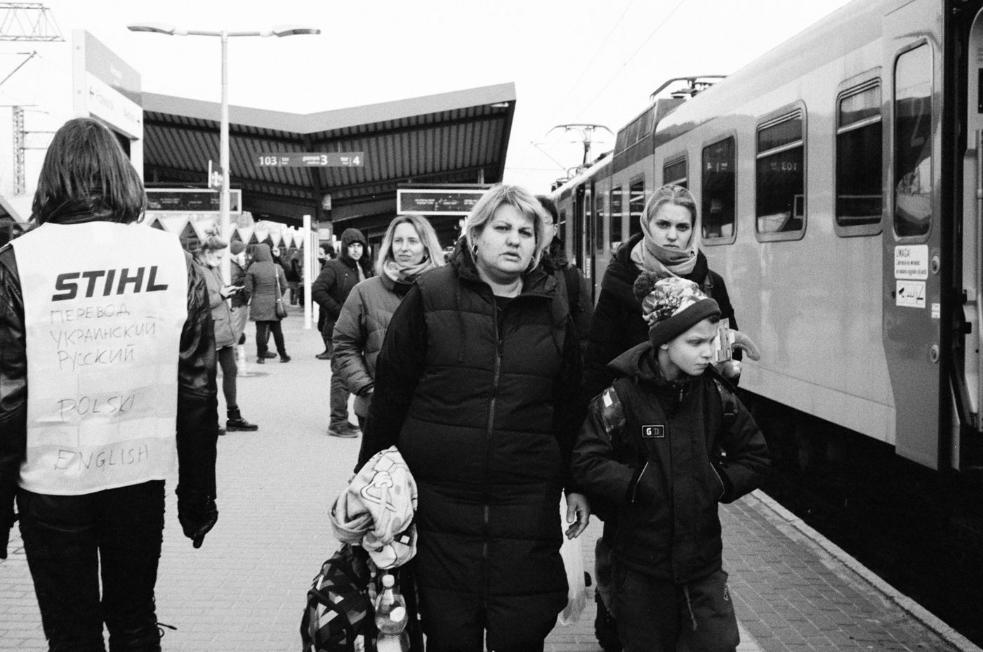 In the Przeml train station, a few kilometers from the Ukrainian border on the Polish side, there is an influx of Ukrainians fleeing the bombs in one direction, but sometimes also, in the opposite direction, young men returning to the country to try to defend it.