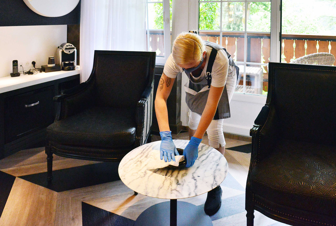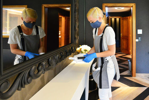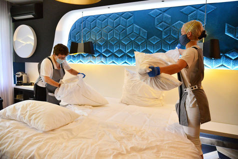 On June 13, 2020, hotels in France were able to welcome customers again after several months of confinement after the sector agreed to sign a charter insuring the health safety of customers and staff. From now on, making a room takes 15 minutes more for the maids because everything must be disinfected, from the door handles to the remote control of the television. Report in the Bas-Rhin, in the village of Colroy-la-Roche, at the Hostellerie La Cheneaudiere in June 2020.