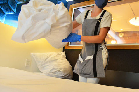 Le 13 juin 2020, les hotels de France ont pu de nouveau accueillir des clients apres plusieurs mois de confinement apres que la filiere ait accepte de convenir d'une charte garantissant la securite sanitaire des clients comme du personnel. Desormais, faire une chambre demande 15 mn de plus aux femmes de chambre car tout doit être desinfecte, des poignees de porte a la telecommande de la television. Reportage dans le Bas-Rhin, dans le village Colroy-la-Roche, a l'Hostellerie La Cheneaudiere en juin 2020.