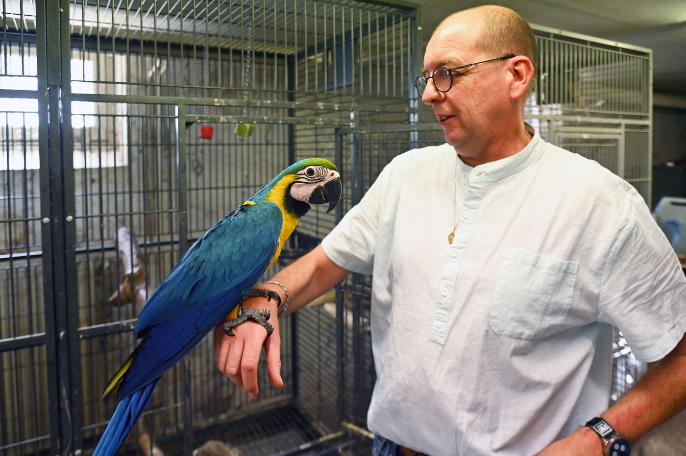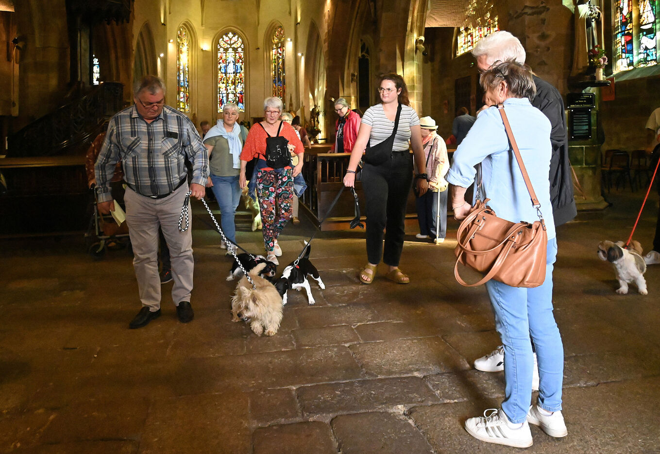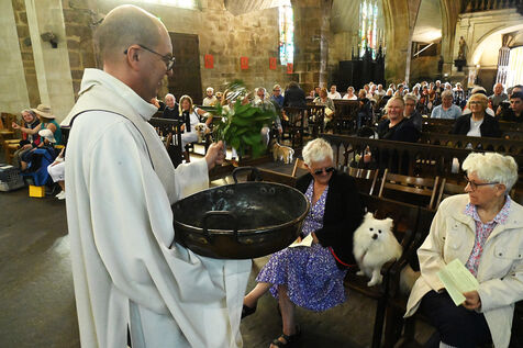 As in previous years, a story will undoubtedly appear in local newspapers inviting the faithful to come in large numbers to the Notre-Dame-de-Paradis basilica, in Hennebont, on the Sunday following World Animal Day on October 4, to bless their domestic animals. On this special day, the church is transformed into a true Noah's Ark : dogs sitting quietly on the knees of their mistresses, peaceful labradors, curious beagles, fearful cats curled up at the bottom of their boxes! At 4 p.m., the service begins in an atmosphere that is unusual to say the least. Humans sing, animals live their lives, climb on the benches, scatter in the aisles. “Animals participate in the lives of men,” says the priest of Hennebont. For some owners, their pet will be the only company of the day. There is solidarity between all creatures because they all have the same Creator and all are ordered to his glory. By blessing the animals,we give thanks to God.” Leaving the microphone, he grabs a large copper basin filled with holy water and, with a branch, begins his blessing by sprinkling masters and animals. “In sixteen years, I have had goats, snails, hamsters, rabbits and even horses !” Ronan Graziana's eyes shine behind his thin glasses. “I live surrounded by animals, especially birds. I run an ornithology club. Birds are my passion.” In the presbytery garden live alpacas, goats, turkeys, pheasants, Asian ducks and some other exotic birds including parrots.