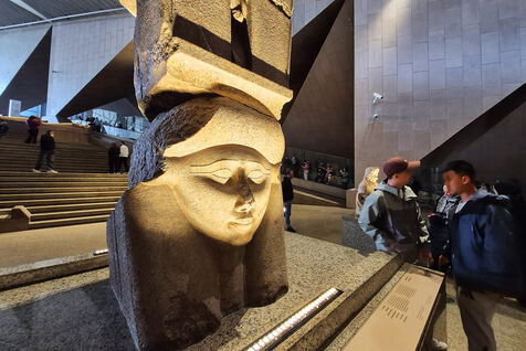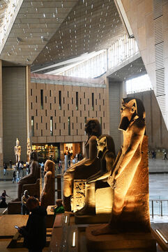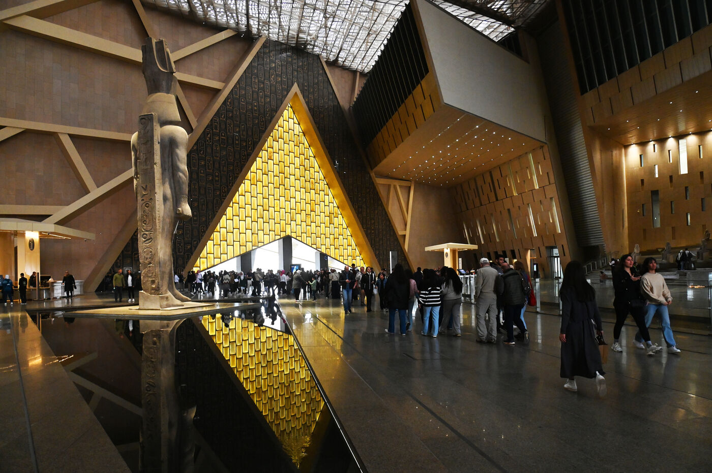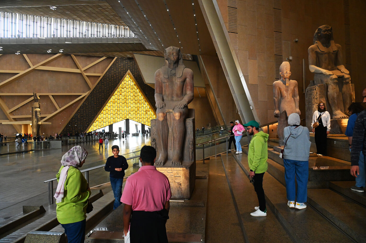 Devant l’impatience des amateurs d’égyptologie, le Grand Musée du Caire a ouvert ses portes aux visiteurs depuis l’automne dernier. La douzaine de salles, mises en scène par le bureau Atelier Brückner, retracent l’histoire égyptienne de l’âge de la pierre à Cléopâtre à travers plusieurs thématiques (« Terre d'Égypte », « Parenté et monarchie », « L'Homme, la société et le travail », « Religion et culture », « Scribe et savoir »). Ces salles sont accessibles via un grand escalier central parsemé de centaines de statues présentées par ordre chronologique. Au total, les 500 000 m² du GEM devrait accueillir plus de 130 000 pièces provenant des divers musées et sites archéologiques égyptiens. Il est également prévu que le grand musée accueille les momies royales et le trésor des tombes royales de Tanis.Dans le hall d’entrée du musée, le colosse de Ramsès II, avec ses 11 mètres de hauteur pour un poids de 100 tonnes, est comme le gardien de ce nouveau temple de l’archéologie égyptienne.