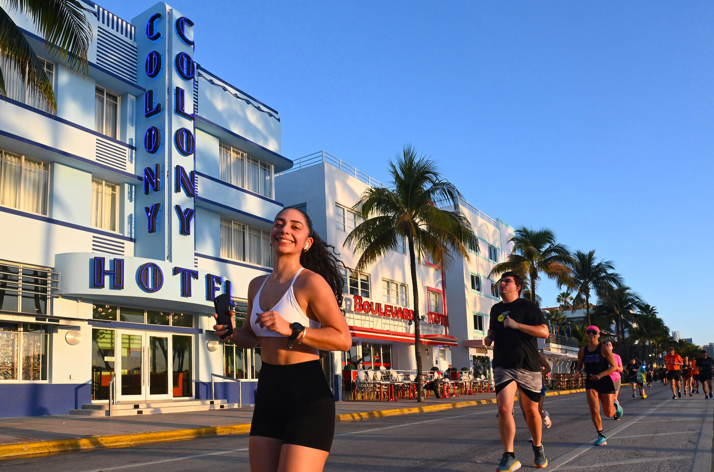 Il est encore tôt sur Ocean Drive. Le soleil vient de se lever, la plage est quasi déserte malgré une mer translucide et calme propice à la baignade. Roy, guide bénévole, a donné rendez-vous à une poignée de passionnés d’architecture devant l’Art Deco Welcome Center, situé au carrefour de la 10e Rue. Le tour débute par une longue déambulation le long d’Océan Drive. Là, sur à peine un kilomètre de long, se succèdent des façades d’immeubles aux formes géométriques, aux lignes pures, à la décoration fleurie et aux couleurs pastel. Tous sont d’anciens hôtels construits au lendemain du cyclone de 1926 qui détruisit la ville. Le style en vogue alors est l’Art Déco et les architectes en profitent, créant en quelques années un lieu qui deviendra bientôt mythique, où stars et crooners viendront faire la fête sous le soleil et les cocotiers à bord de ces belles voitures américaines dont quelques unes se prélassent encore devant certains hôtels.