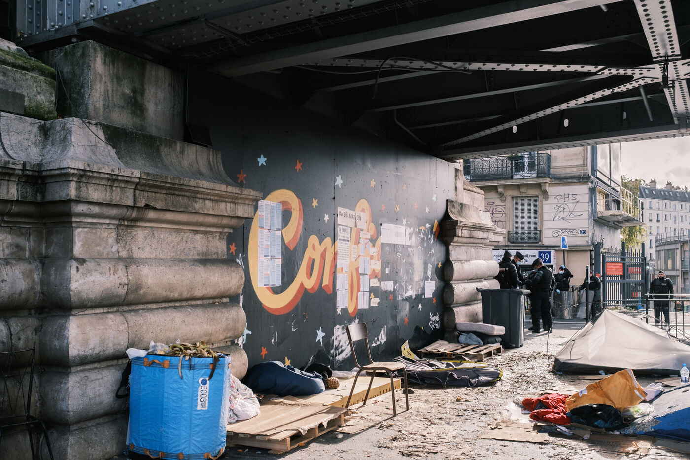 Evacuation of the camp of La Chapelle, under the orders of the prefecture of police, where nearly 900 people had been surviving for 4 weeks, in extremely difficult conditions. Buses chartered by the prefecture took 800 people to shelters as part of a "sheltering" operation. More than 150 people in exile were not taken in charge and remain without accommodation, forced to continue sleeping on the streets.