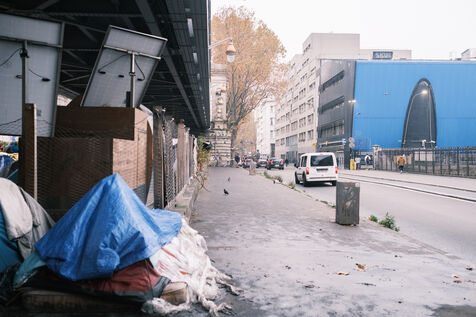 Près de 300 hommes exilés survivent sur le campement des anciens jardins partagés dans le quartier de La Chapelle, sous le métro aérien.