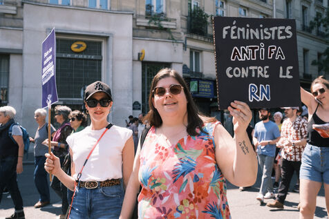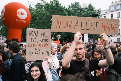 Manifestations à l'appel du Nouveau Front Populaire à l'approche des élections législatives faisant suite à la dissolution de l'Assemblée Nationale par Emmanuel Macron, pour appeler à voter pour l'union de gauche et faire barrage à l'extrême droite.