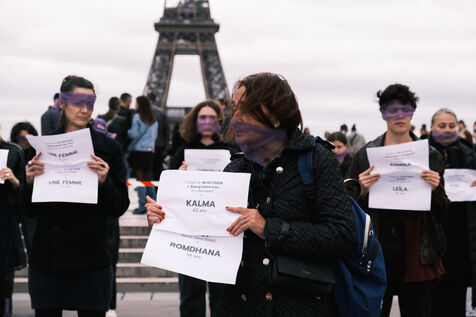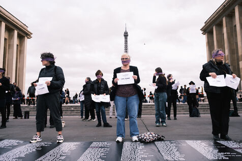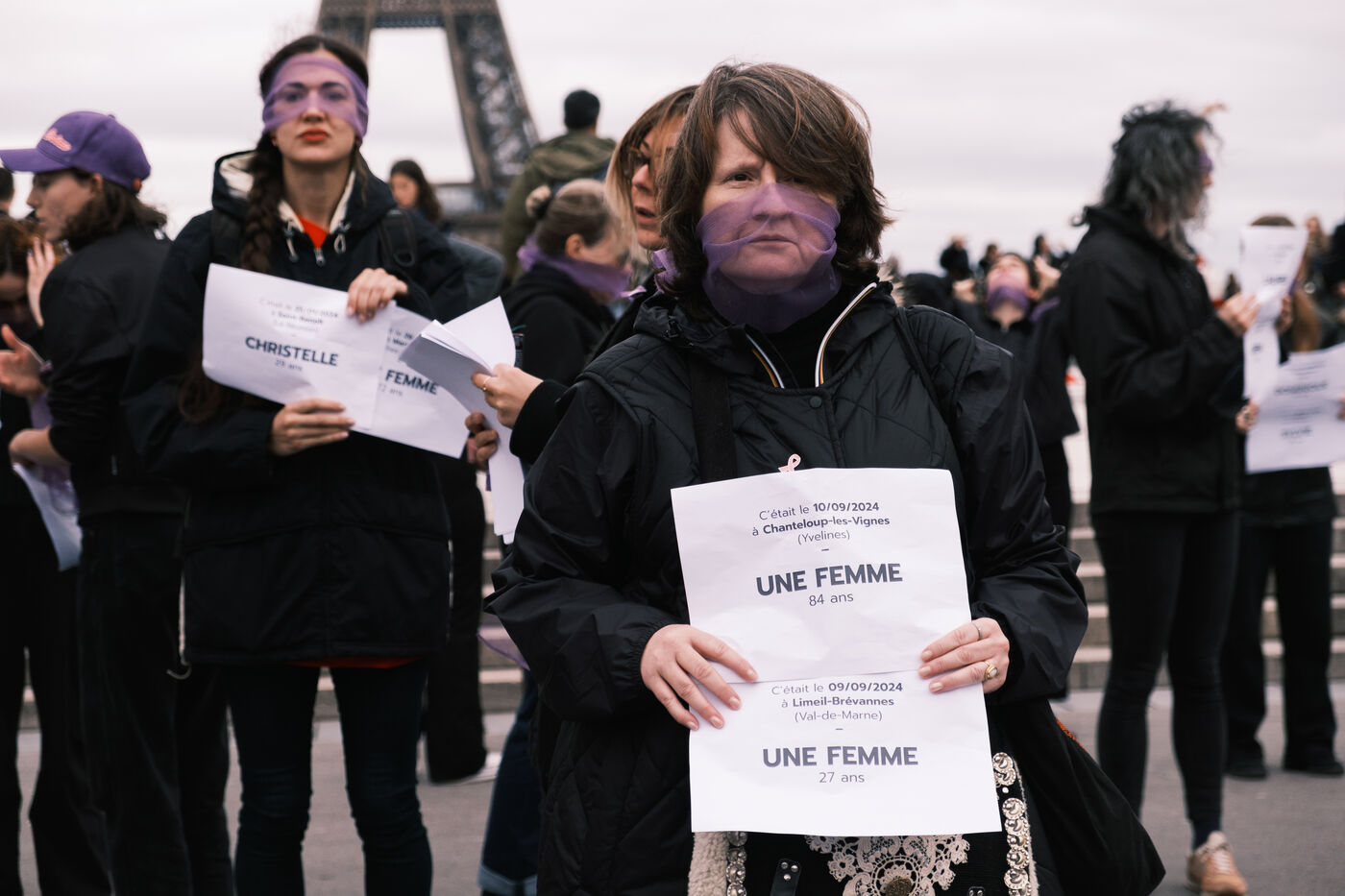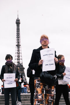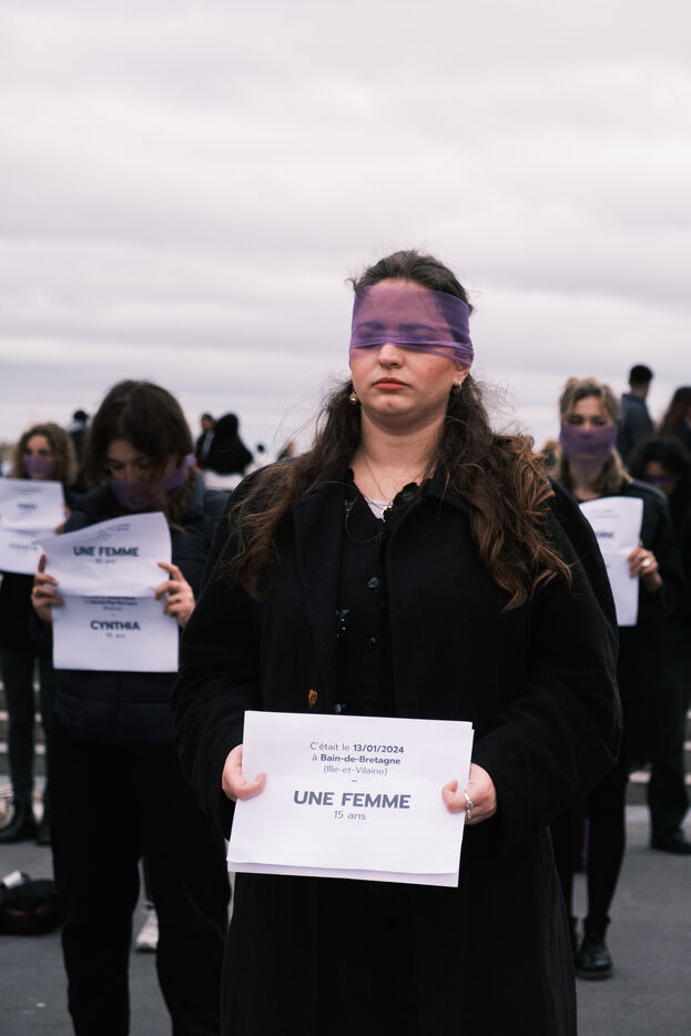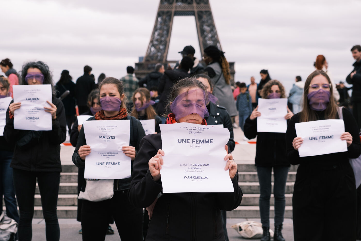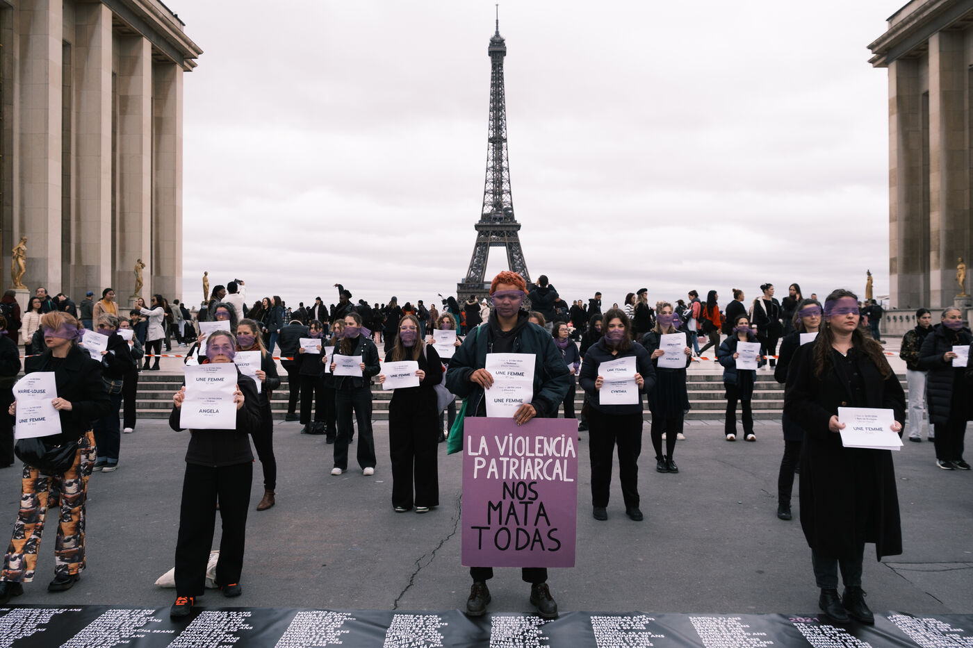 Action by the feminist collective “Nous Toutes” in denunciation of the 1,000 victims of feminicide since the Macron presidency, against the impunity of violent men and in tribute to the victims.