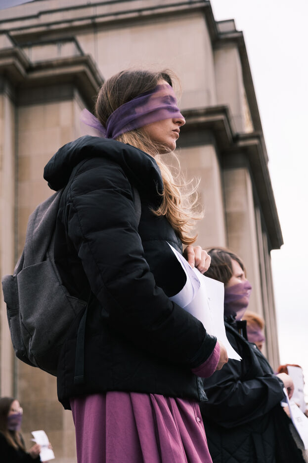 Action du collectif féministe "Nous Toutes" en dénonciation des 1000 victimes de féminicide depuis la présidence Macron, contre l'impunité des hommes violents et en hommage aux victimes.