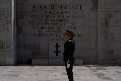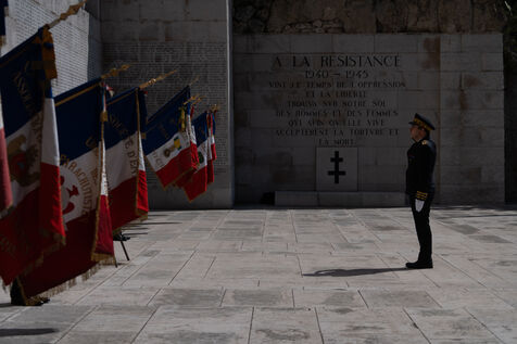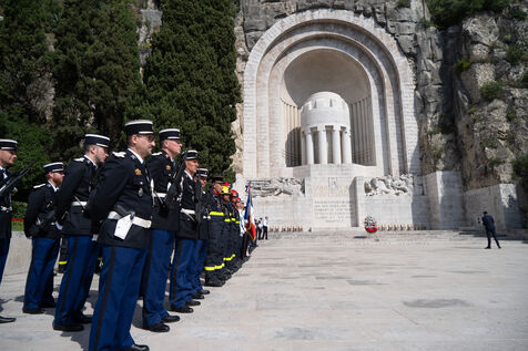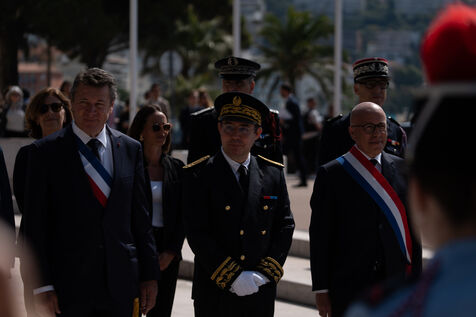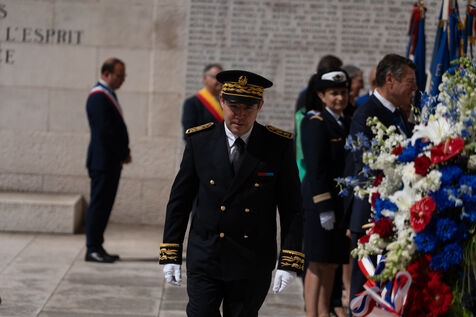 Laurent Hottiaux remet une gerbe au monument aux mort et se presente devant les différentes institutions locales pour sa prise de fonction comme préfet des Alpes Maritimes.