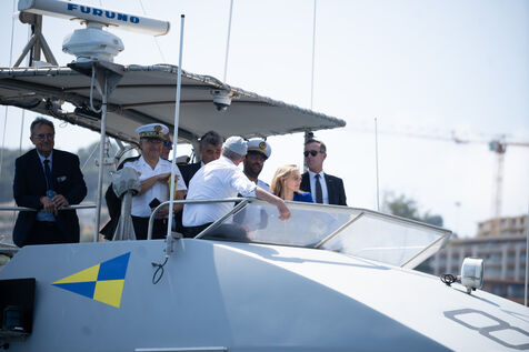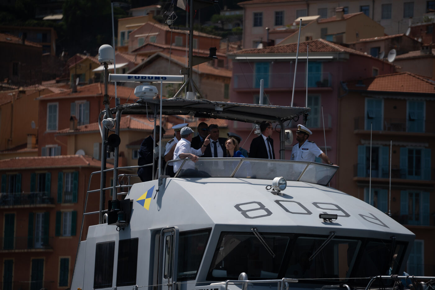 Minister for Ecological Transition Agnes Pannier Runacher visits Villefranche-Sur-Mer. Exhibitions of the safety system and maritime installations.