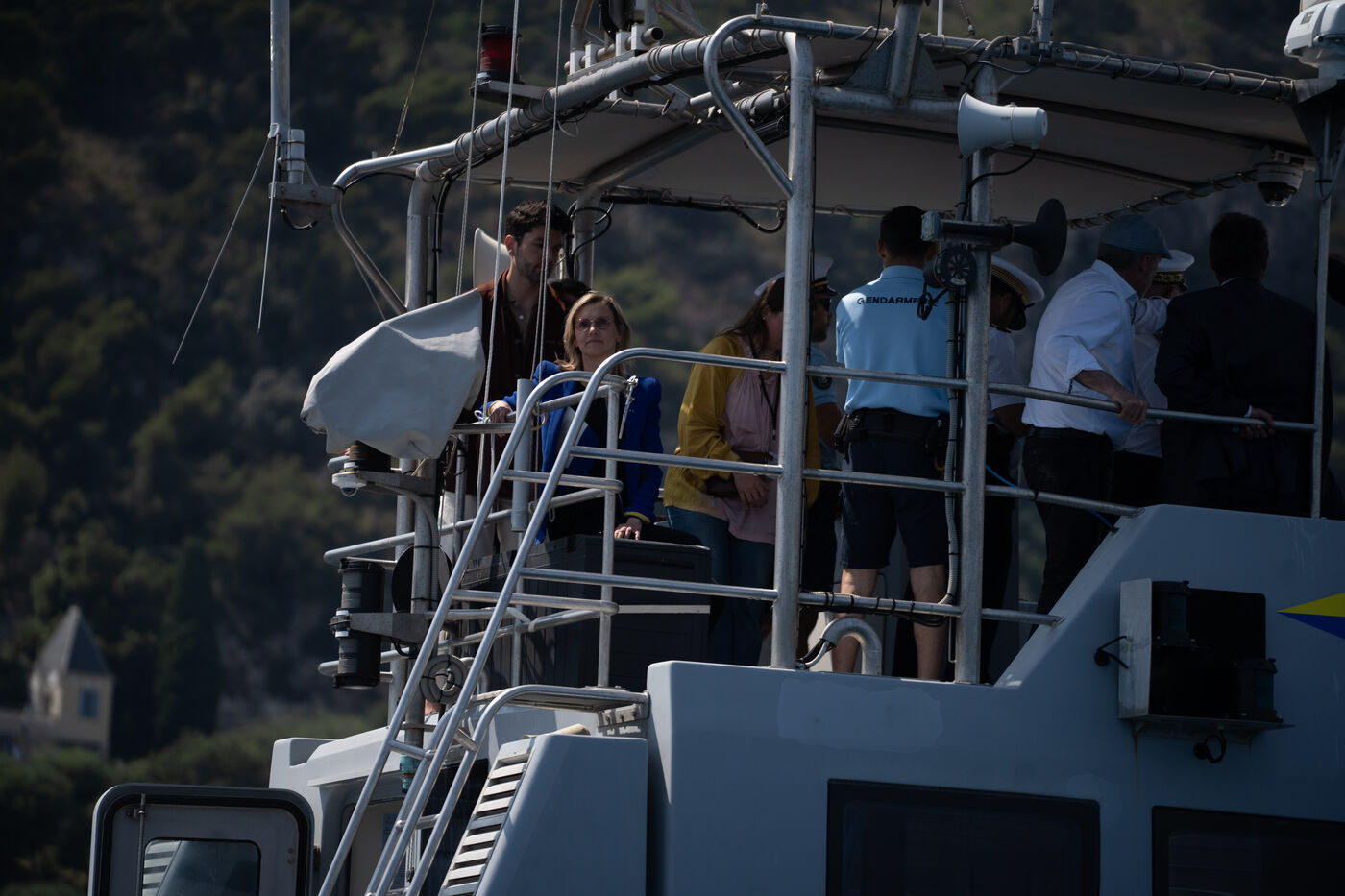 Visite à Villefranche-Sur-Mer de la Ministre de la transition écologique Agnes Pannier Runacher. Expositions du dispositif de sécurité et des installations maritimes.