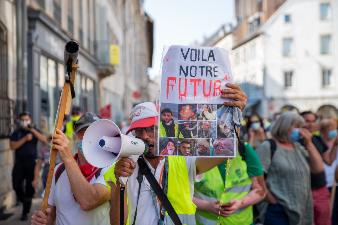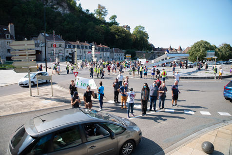 Almost 300 of them gathered at 2pm on the Place de la Révolution for a demonstration through the streets of Besançon. The march lasted 3 hours. In a calm and determined manner, those present took up the slogans of the pre-coronavirus demonstrations all along the route.