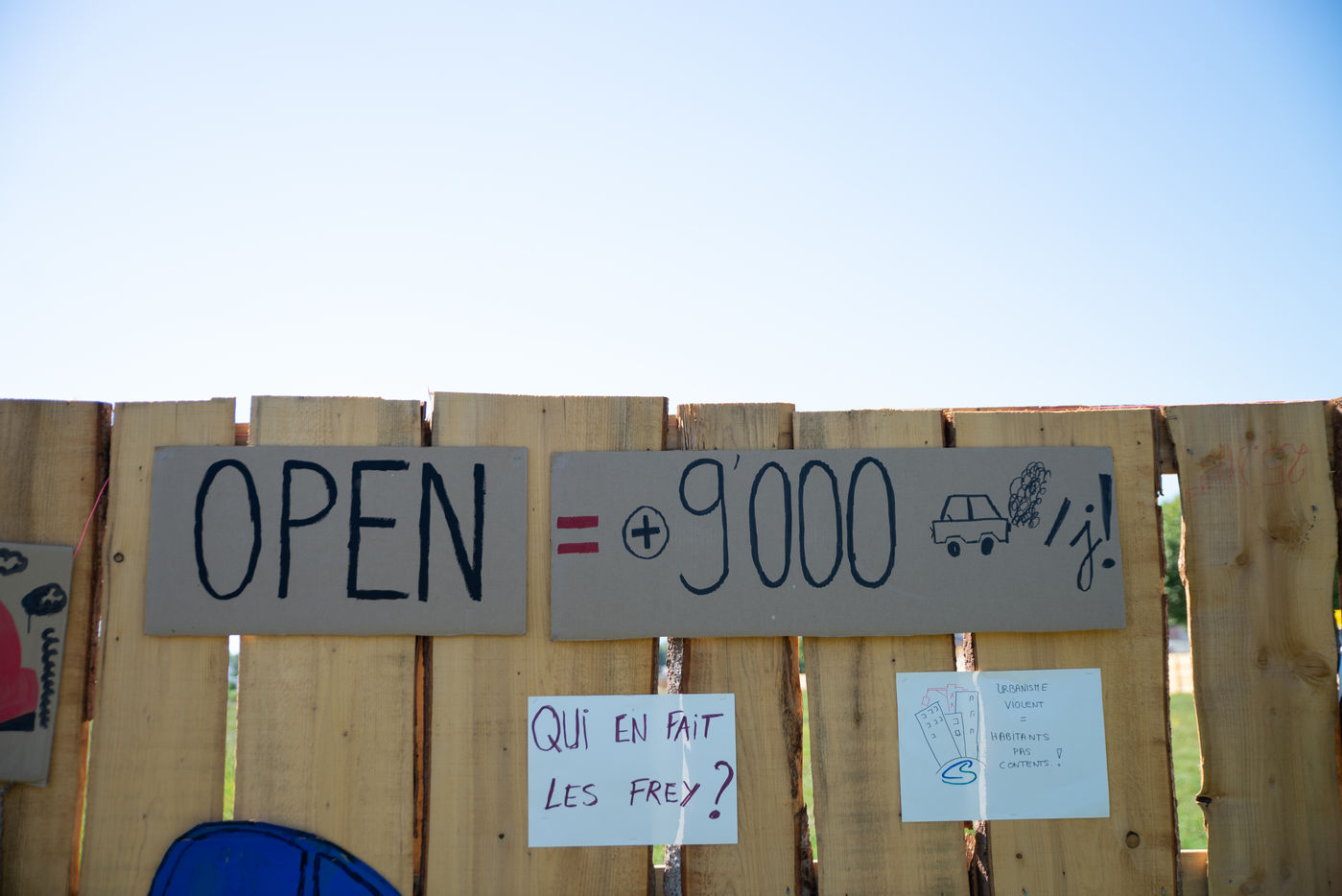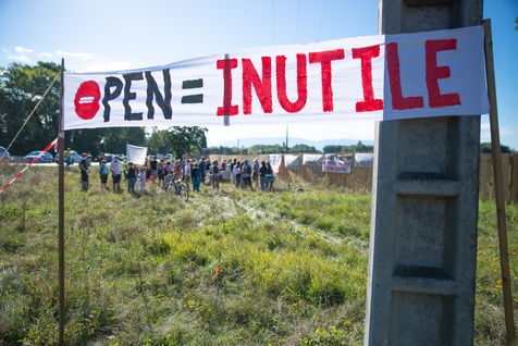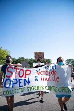 On 5 September 2020 a demonstration was organised by Anv Cop 21 and the "Stop au projet Open" collective just in front of the site that should host the shopping centre. A few days before, a wooden pallissant was built around the site.