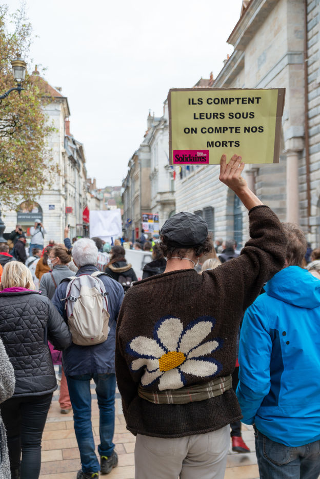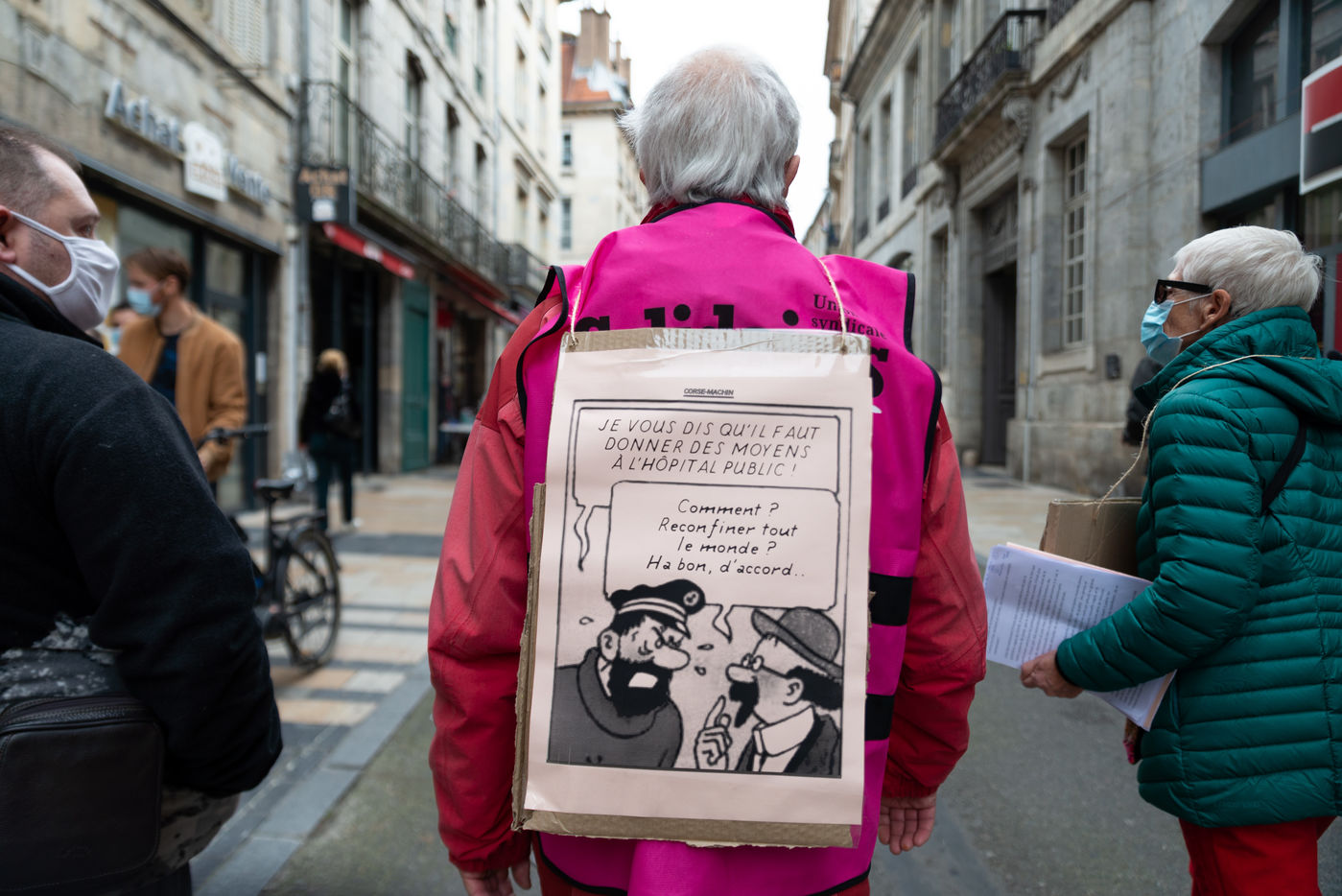 In the main streets of Besançon, on Saturday 7 November, 600 people demonstrated to denounce both the break-up of the public service, the lack of resources invested in the hospital after the first wave, and the measures taken by the government to deal with the return of the virus.