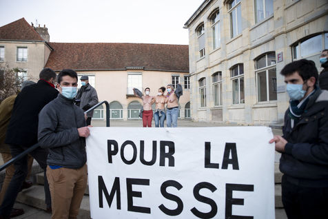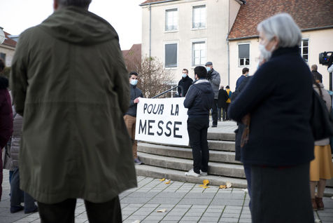 On the afternoon of 21 November, after two demonstrations, one against the Global Security Law and another against violence against women, a small group of Catholic faithful met on the square in front of Besançon town hall to pray together and ask for the reopening of masses.
