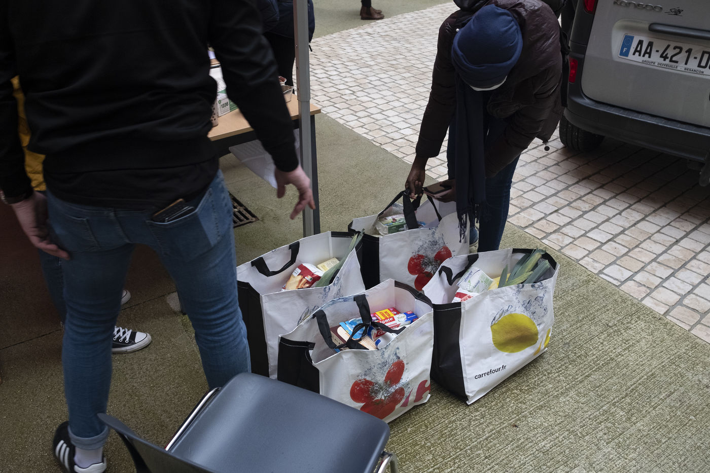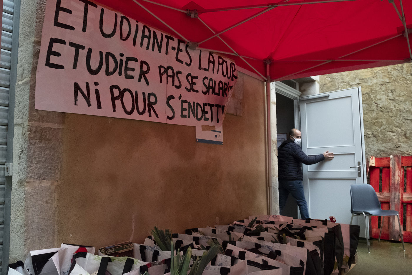 Distribution etudiante de nourriture et de produits d'hygiène.