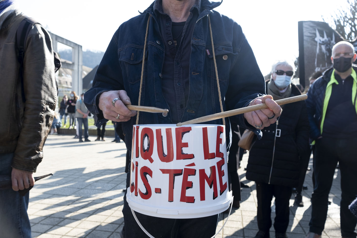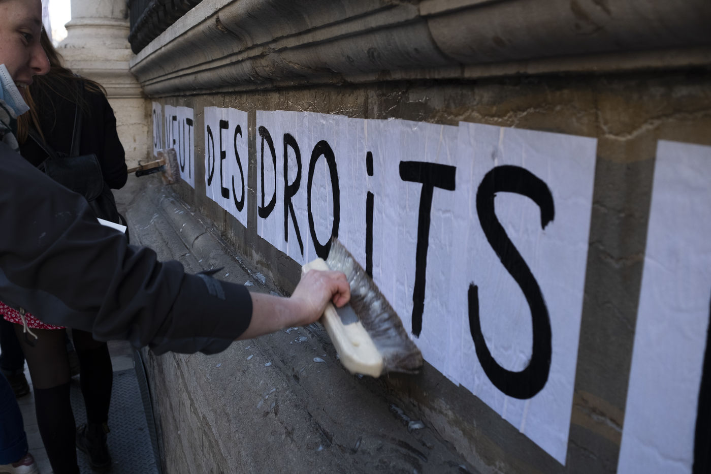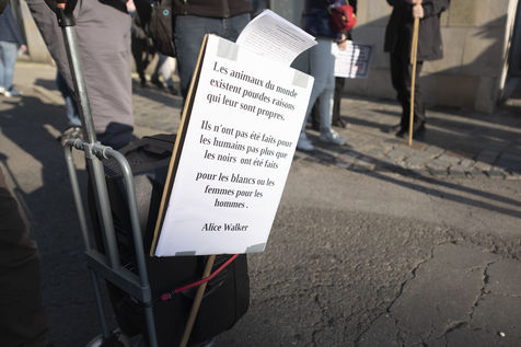 A 14h30 les premières personnes arrivent sur l'esplanade des droits de l'Homme, rebaptisée pour l'occasion "esplanade des droits humains".