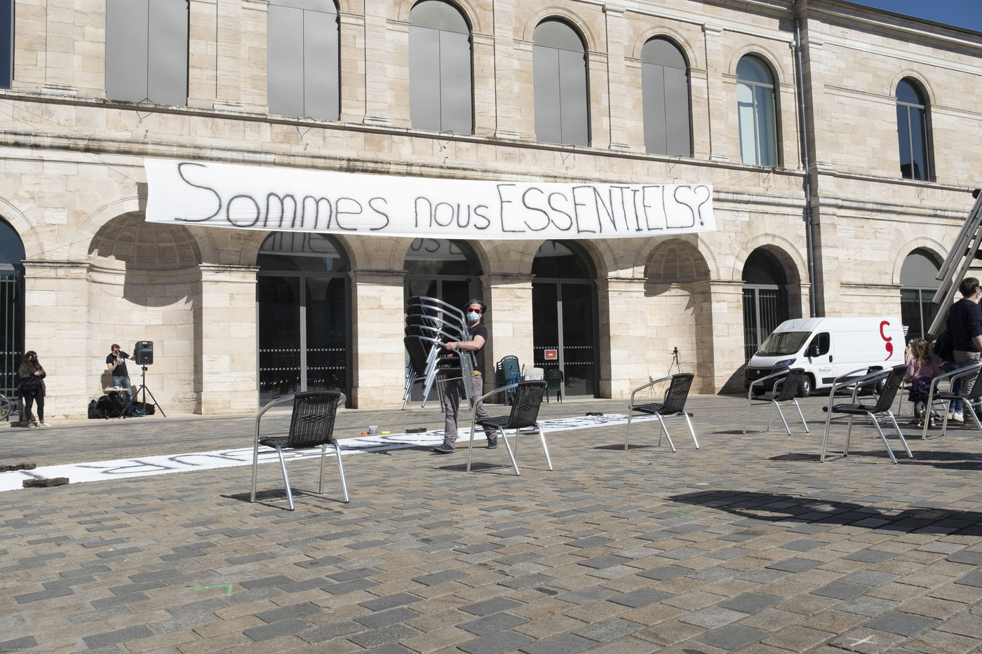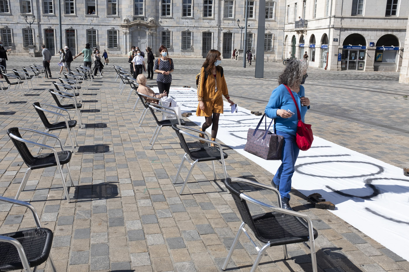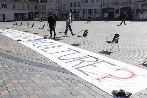 Les organisateur.rice.s se sont coordonné.e.s pour installer 196 chaises en veillant à respecter les mesures que le gouvernement a prises pour la future réouverture des salles et festivals.
