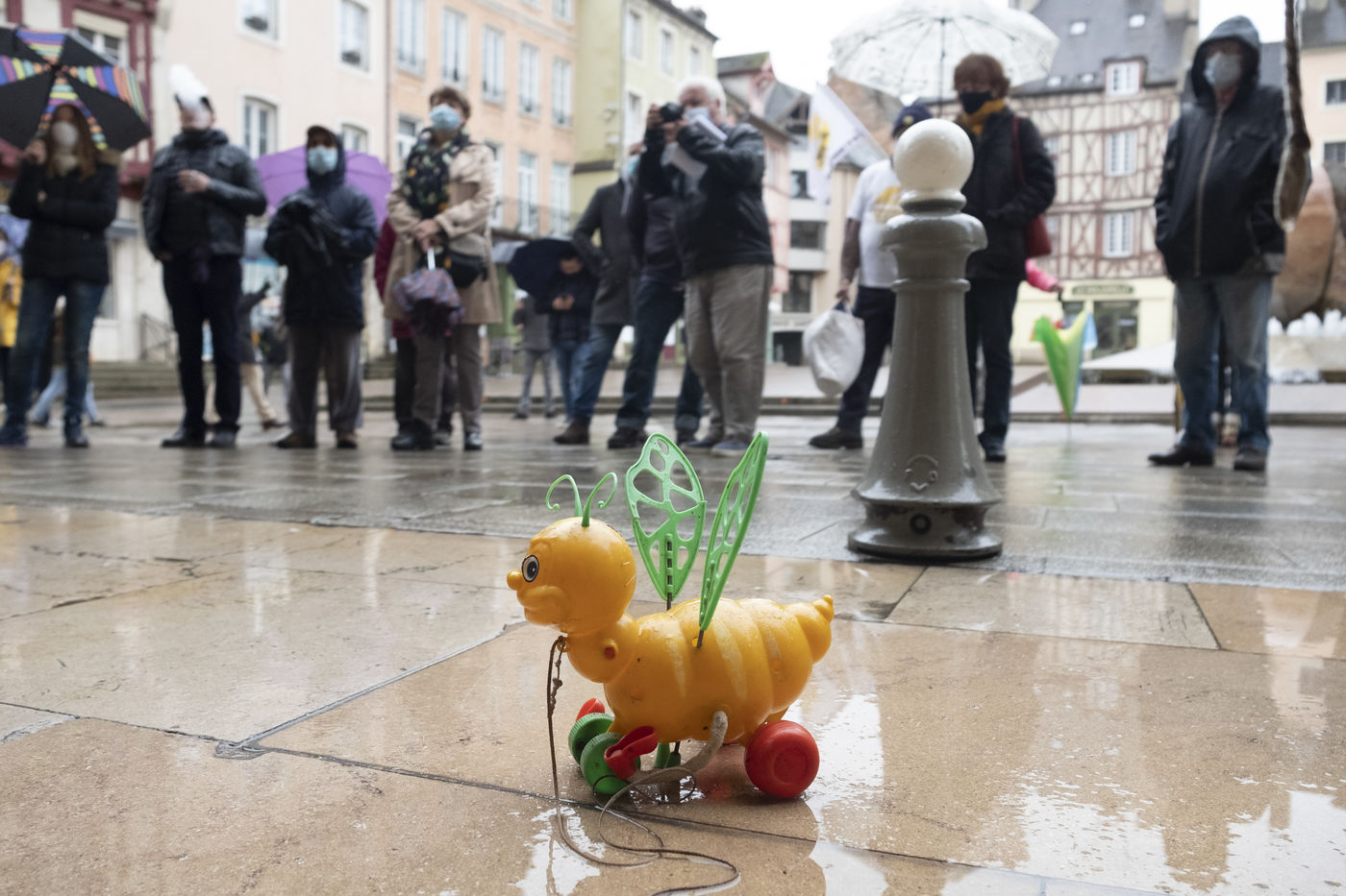 Because of the weather and the small number of people present, after a few notes from the music of the "Fanfarosoir" and some speeches, the forty or so people did not leave for the demonstration.