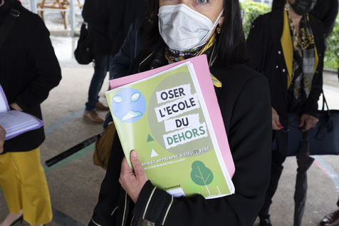 A l'école, les ministres étaient en compagnie d'enfants qui bénéficient du programme « école du dehors ».