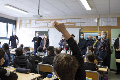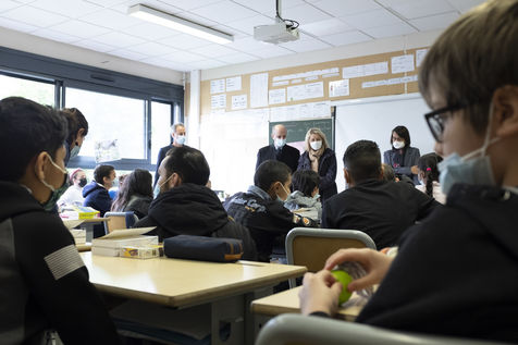 Au lycée, après des échanges avec des élèves au sujet du projet « Fresque pour le climat », un accord-cadre a été signé entre les deux ministères pour « accélérer le déploiement de l'éducation au développement durable sur tout le territoire ».