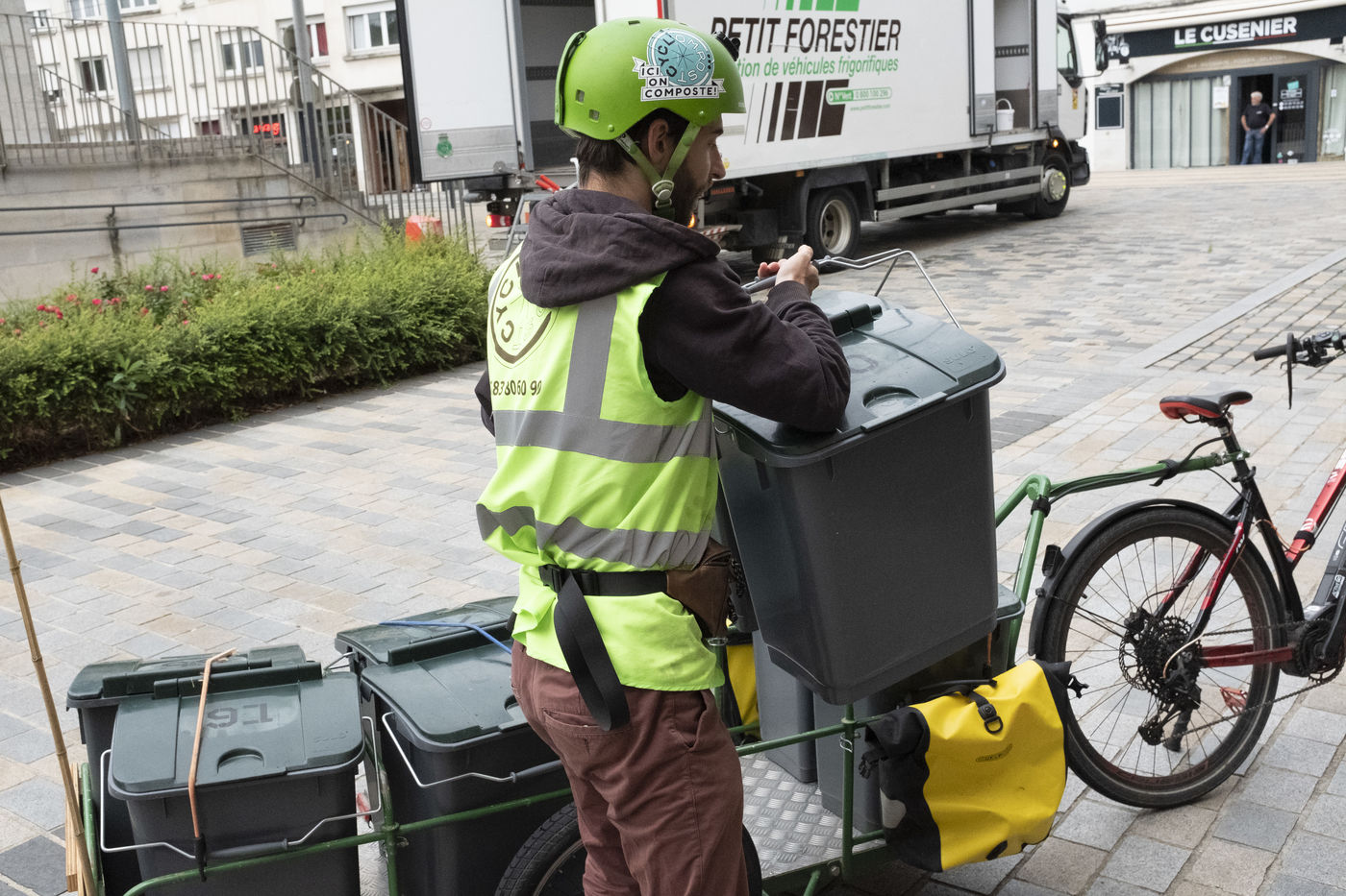 Under the name Cycl'ompost and dressed in green, they collect the bins by bike three times a week.