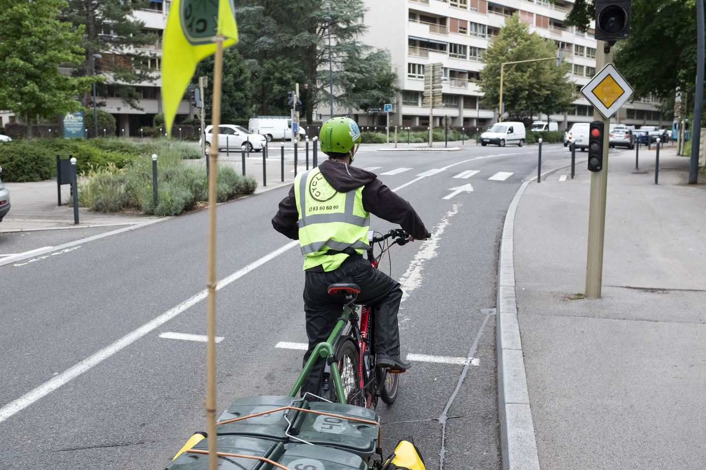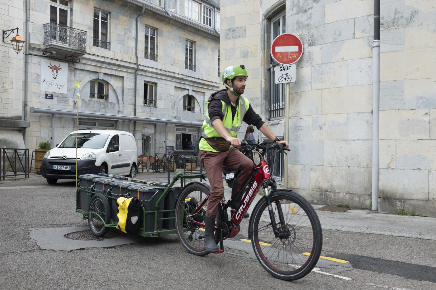 Sous le nom Cycl'ompost et habillés en vert, 3 fois par semaine ils collectent à vélo les bacs.