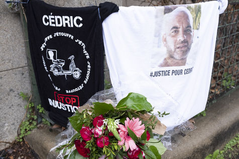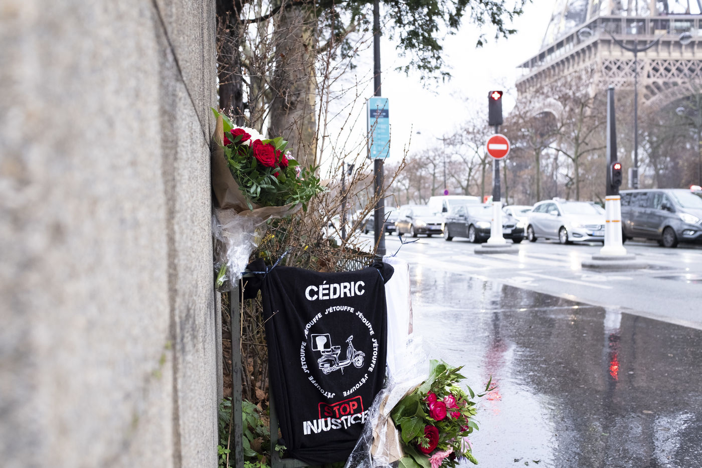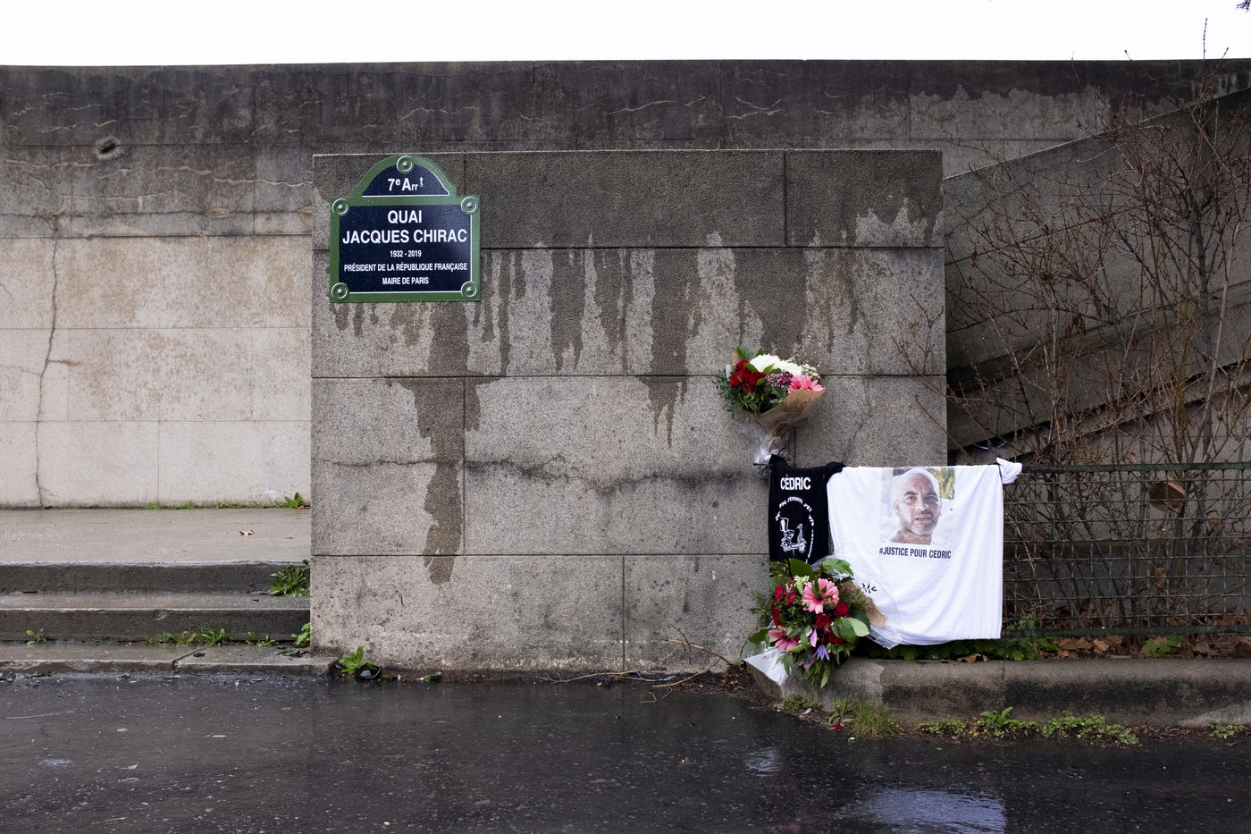 Two years after Cedric Chouviat's violent interpellation, flowers and two t-shirts were left at the scene of the interpellation.