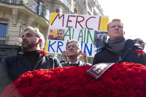 His friends and supporters marched from the Place la Nation to Père-Lachaise, the cemetery where he is buried.