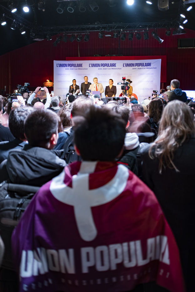 Au soir du premier tour des élections présidentielles, l'équipe de campagne de l'Union populaire était réunie au Cirque d'Hiver pour l'annonce des résultats.