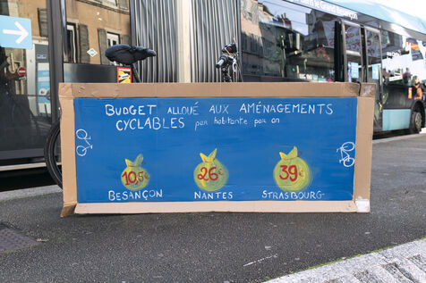 On Saturday 3 December 2022, for one and a half hours, about fifty activists involved in the climate movement in Besançon temporarily blocked part of a busy road to create a cycle track.