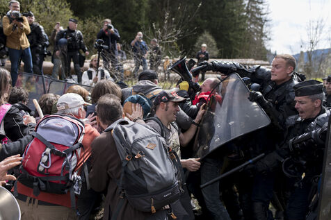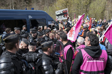 Demonstration on the occasion of Macron's visit to the Château de Joux