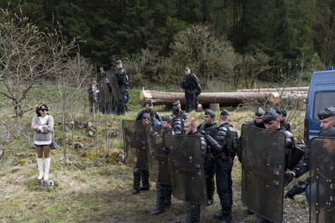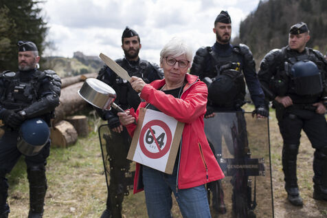 Jeudi 27 avril 2023, environ 300 personnnes se sont réunies non loin du chateau de Joux, dans le Haut-Doubs, là ou Emmanuel Macron a prononcer un discours pour commémorer les 175 ans de l'abolition de l'esclavage en France. Un fort dispotif policier quadriait toute la zone.