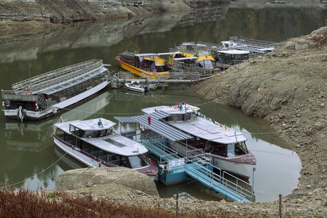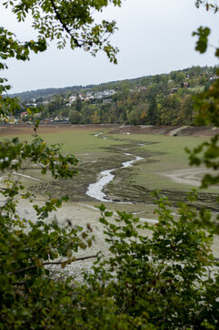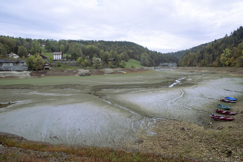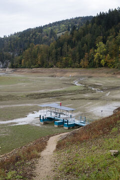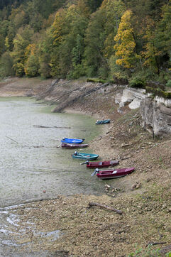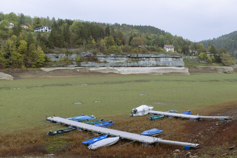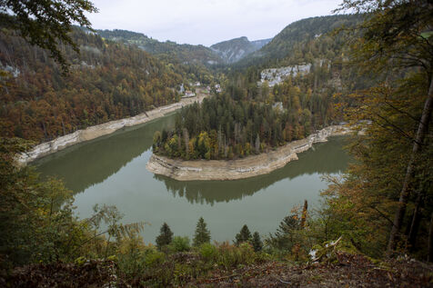 À la suite d'un été particulièrement sec, à la mi-octobre le Doubs est au plus bas. Classé Grande Site National et faisant frontière entre la Suisse et la France au niveau de Villers-le-Lac, le Saut du Doubs et ses bassins ne sont pas accessibles aux visiteurs par bateau. La roche est nue, les embarcations sont échouées ou à quai, la végétation terrestre a repris ses droits là où en temps normal la faune et flore aquatique s'épanouissent. Depuis maintenant plusieurs années ce site fait parler de lui en temps de sècheresse tant les images parlent d'elles-mêmes.